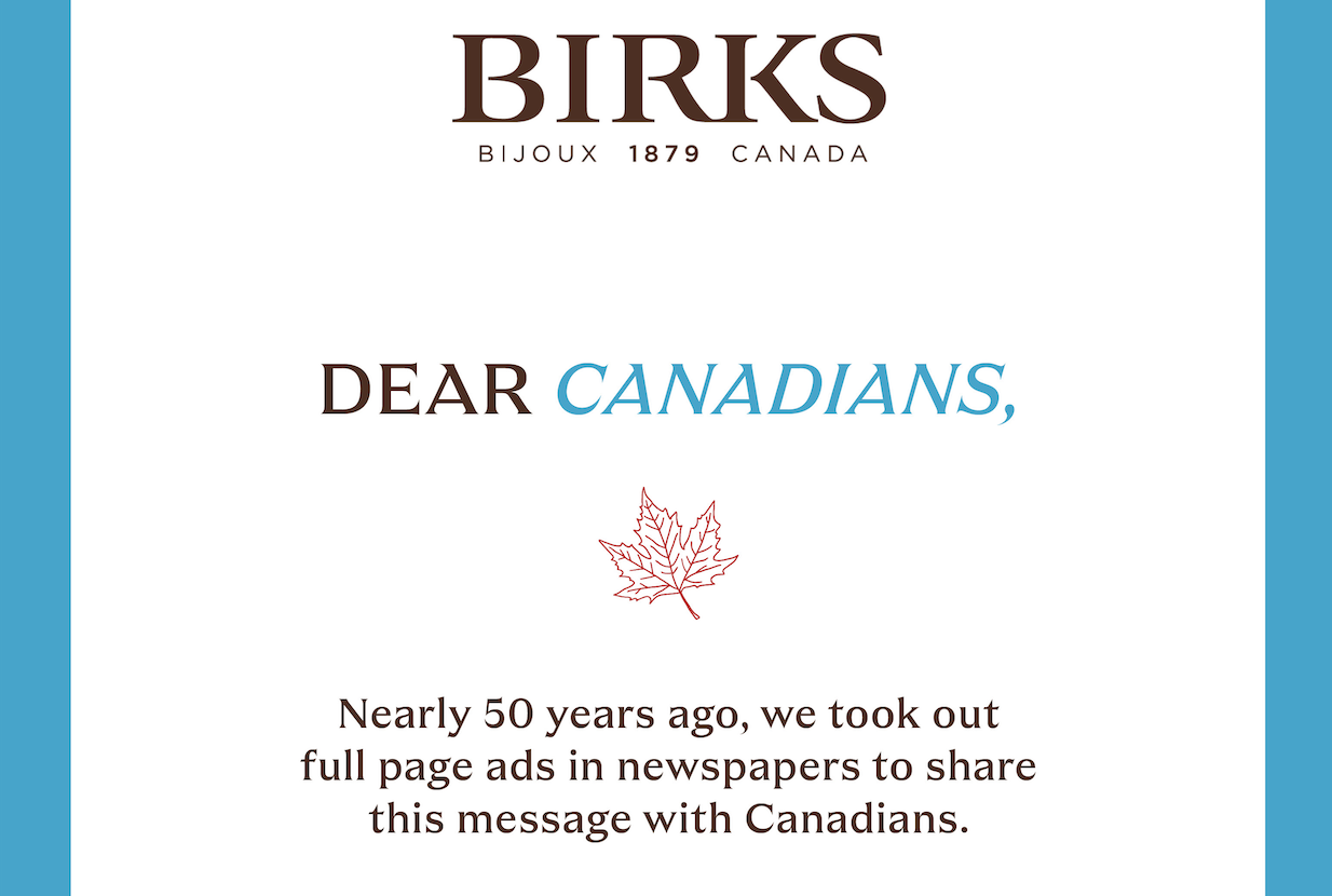 Birks brings back a 50-year-old newspaper ad touting Canadian optimism