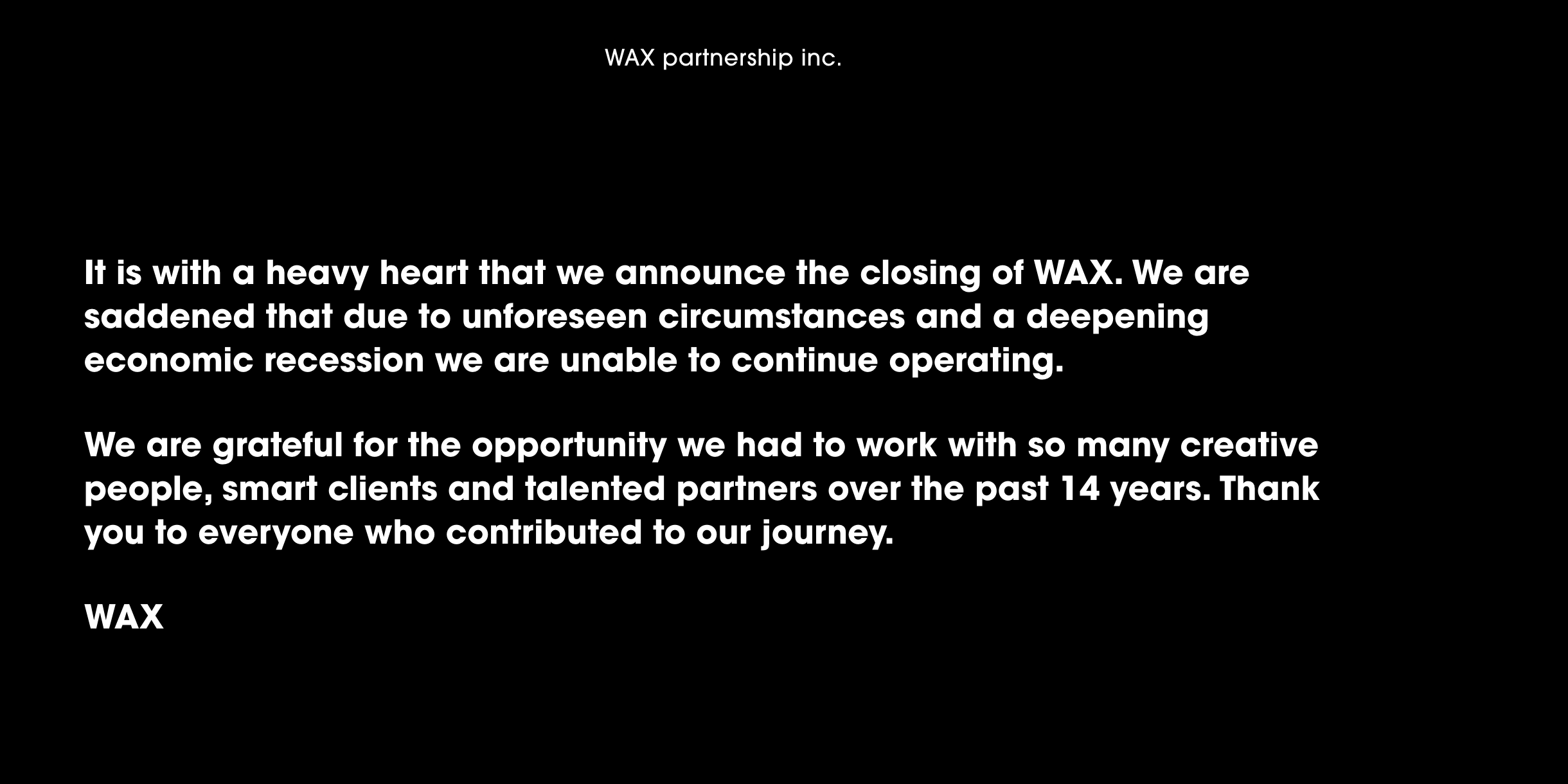 Calgary's Wax Partnership Closes Its Doors