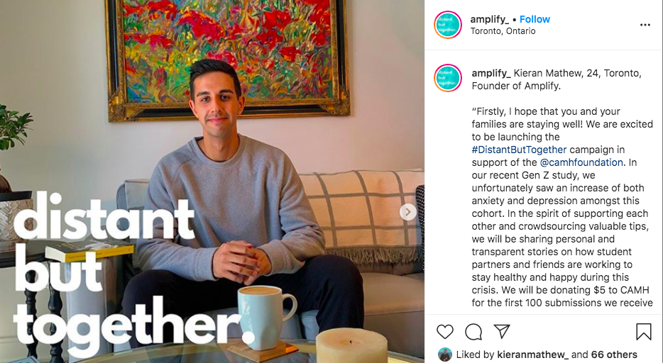 His post kicked off a new campaign, #DistantButTogether, inspired by recent Amplify research examining how Gen Z is feeling during the COVID-19 pandemic.
