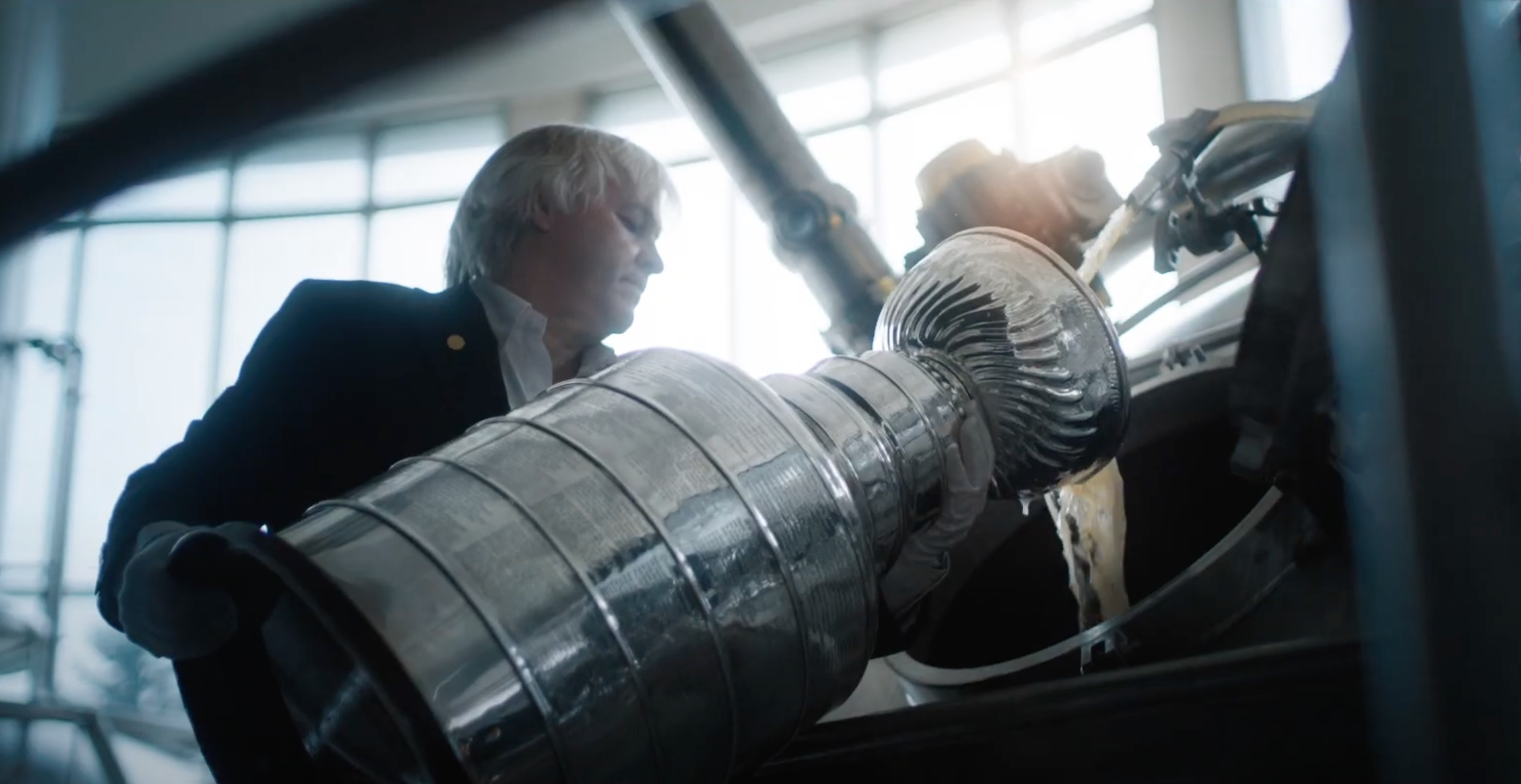An accompanying video created by Rethink features Hockey Hall of Fame curator and "Keeper of the Cup" Phil Pritchard holding the Cup as beer flows into the bowl, accompanied by historical footage of teams celebrating Cup victories.