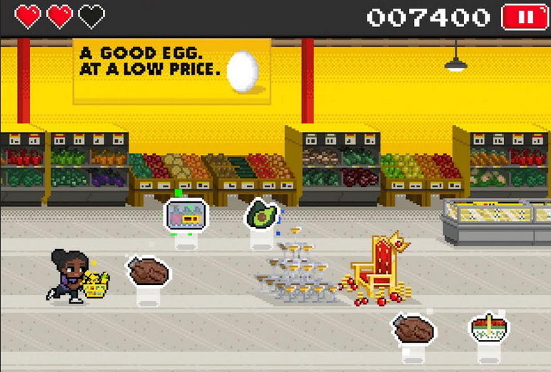How: Hauler: Aisles of Glory is reminiscent of arcade classics like Donkey Kong, with players using just three controls (up, down and jump) to help their selected "Hauler" navigate through a No Frills store. The objective is to collect everyday grocery items from departments including meat, produce, bakery, etc. while at the same time avoiding unnecessary "frills" like diamonds, limousines and boats. Once their play-through is complete, players can enter their PC Optimum number to collect 500 daily points. The game will continue rewarding players until Loblaw has dispensed 50 million points to Canadians. The screen also shows the location of the player's nearest No Frills location.