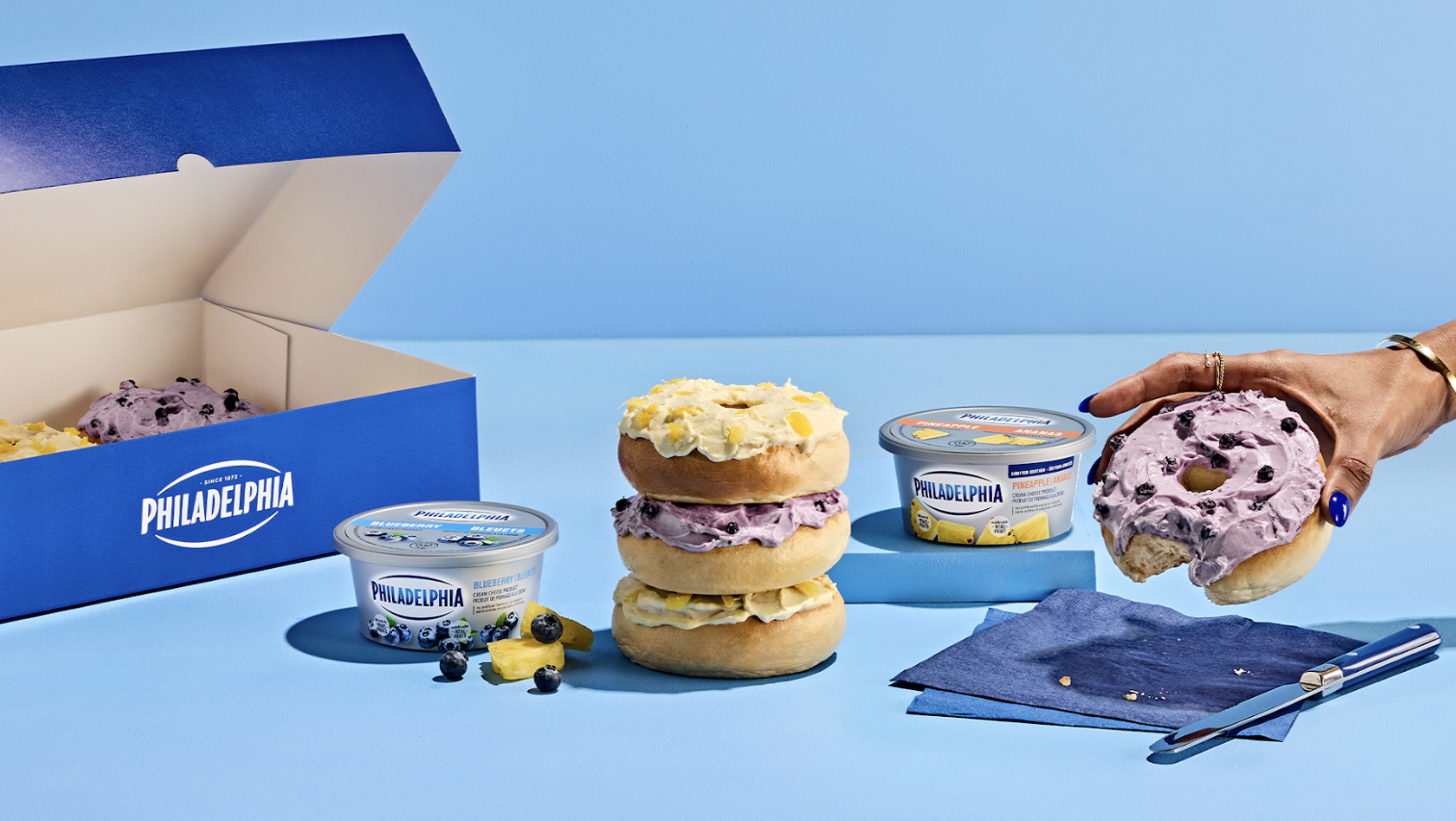 The Kraft Heinz Canada brand marks the debut of two new fruit flavours, blueberry and pineapple, with the donut-bagel hybrid.