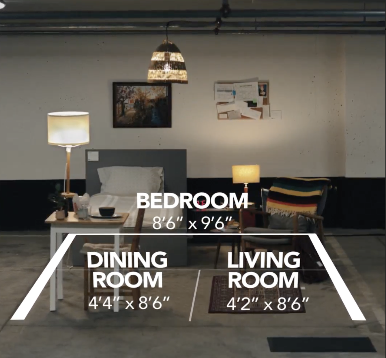 Created with Sid Lee, the installation was meant to show what someone making minimum wage could afford in Toronto, with the one-bedroom rental mock up listed at a hypothetical cost of $250/month, which is about what it costs to rent a parking spot in the city.