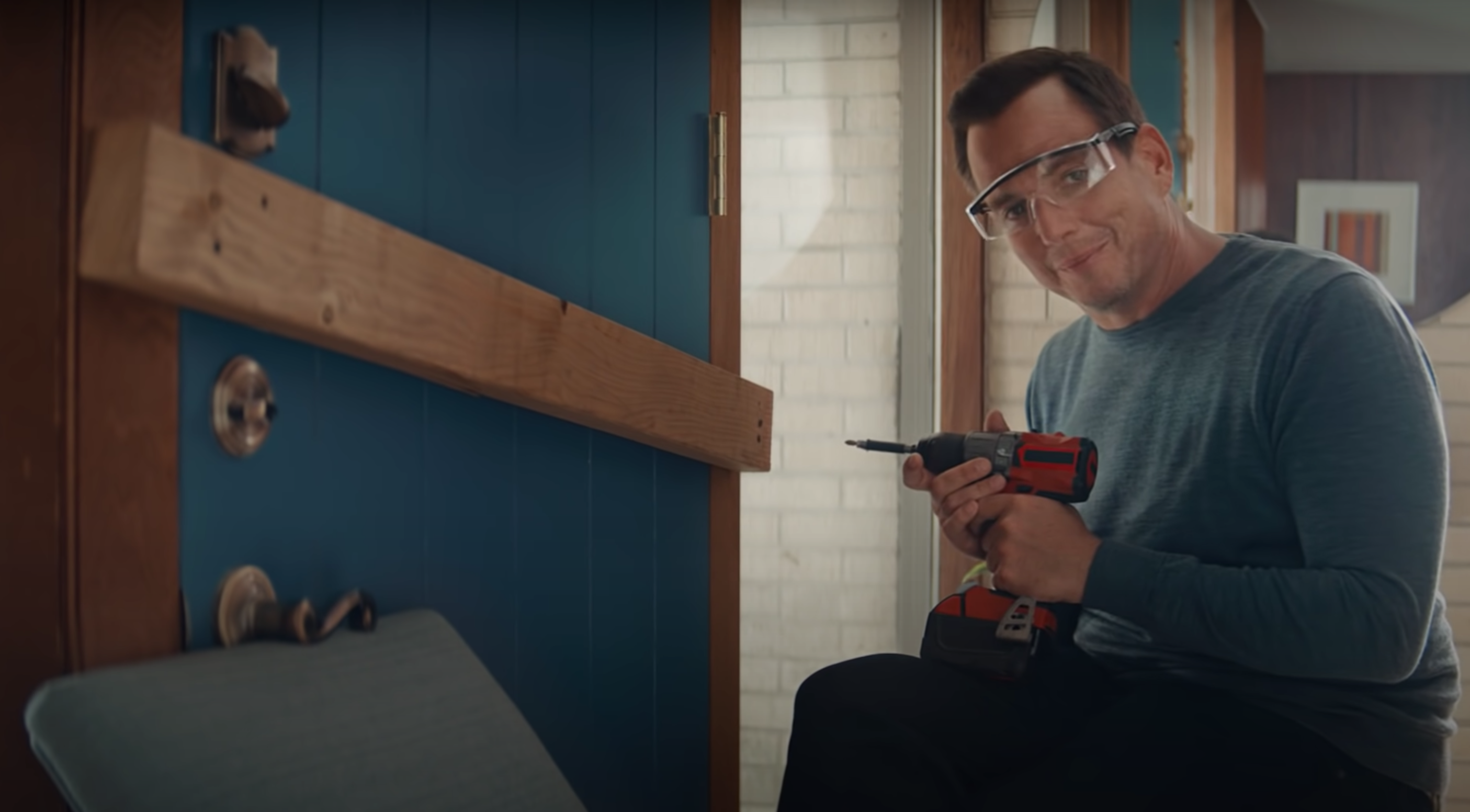 The spot then moves indoors, where we see Arnett applying multiple locks to the front door before taking the extra step of placing a chair under the doorknob and then screwing a board across the frame. It's as if he's guarding against a zombie apocalypse, but after more than a year defined by the rigours of home-schooling, it's a scenario to which any parent can relate.