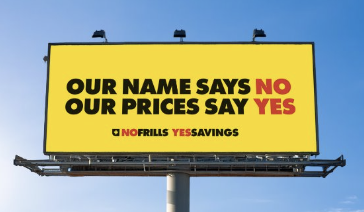 The "No Frills. Yes Savings" campaign from One23West shows how the discount banner can help Canadians avoid needless extravagances.